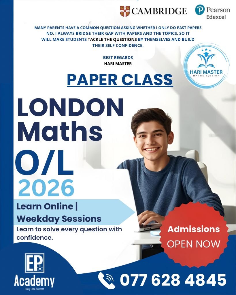 Learn from the renowned UK-based Hari Master, who will be conducting Cambridge or Edexcel Maths classes specially designed for Sri Lankan students, following the official syllabus.